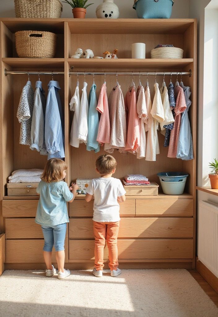 Este enfoque evita duplicados innecesarios y favorece una rotación fluida de las prendas. Los niños realmente usan lo que poseen, y la ropa recupera su función primordial: acompañar el cuerpo, no abarrotar el espacio.