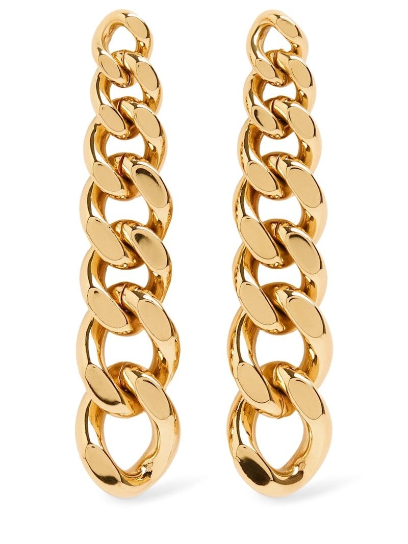 Se puede ser una marca minimalista y atreverse con el oro: la prueba son estos pendientes largos que realzarán un atuendo de tonos neutros, acompañado de un maquillaje ligero.